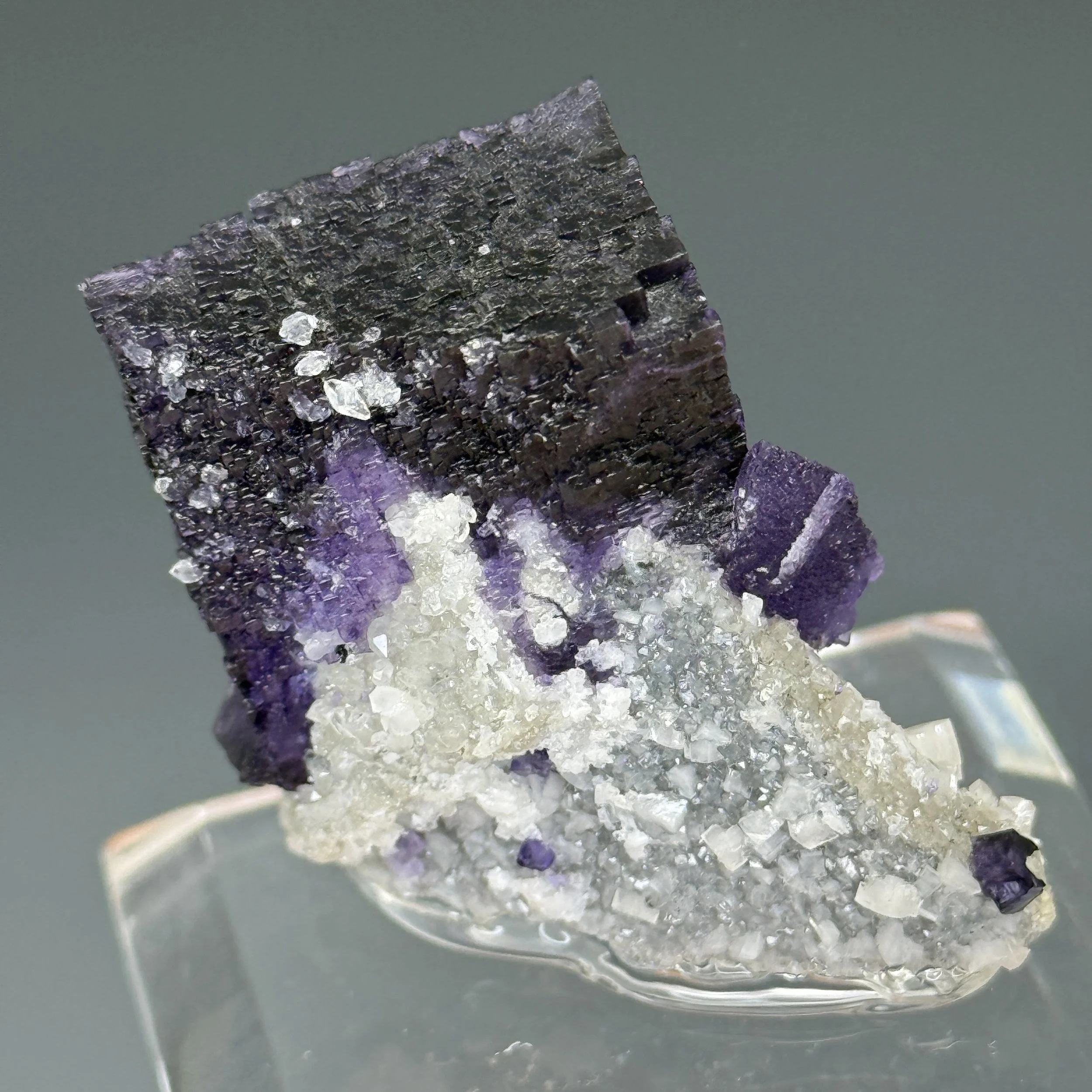 Description: A wonderful cluster of milky barytes from the Murray Mine. The central crystals are coated in a druzy quartz and then there is an outer growth of more barytes. There is damage on the bottom on one side and there are a handful of dings around the edges of some barytes throughout the specimen. Ex: Casey Jones