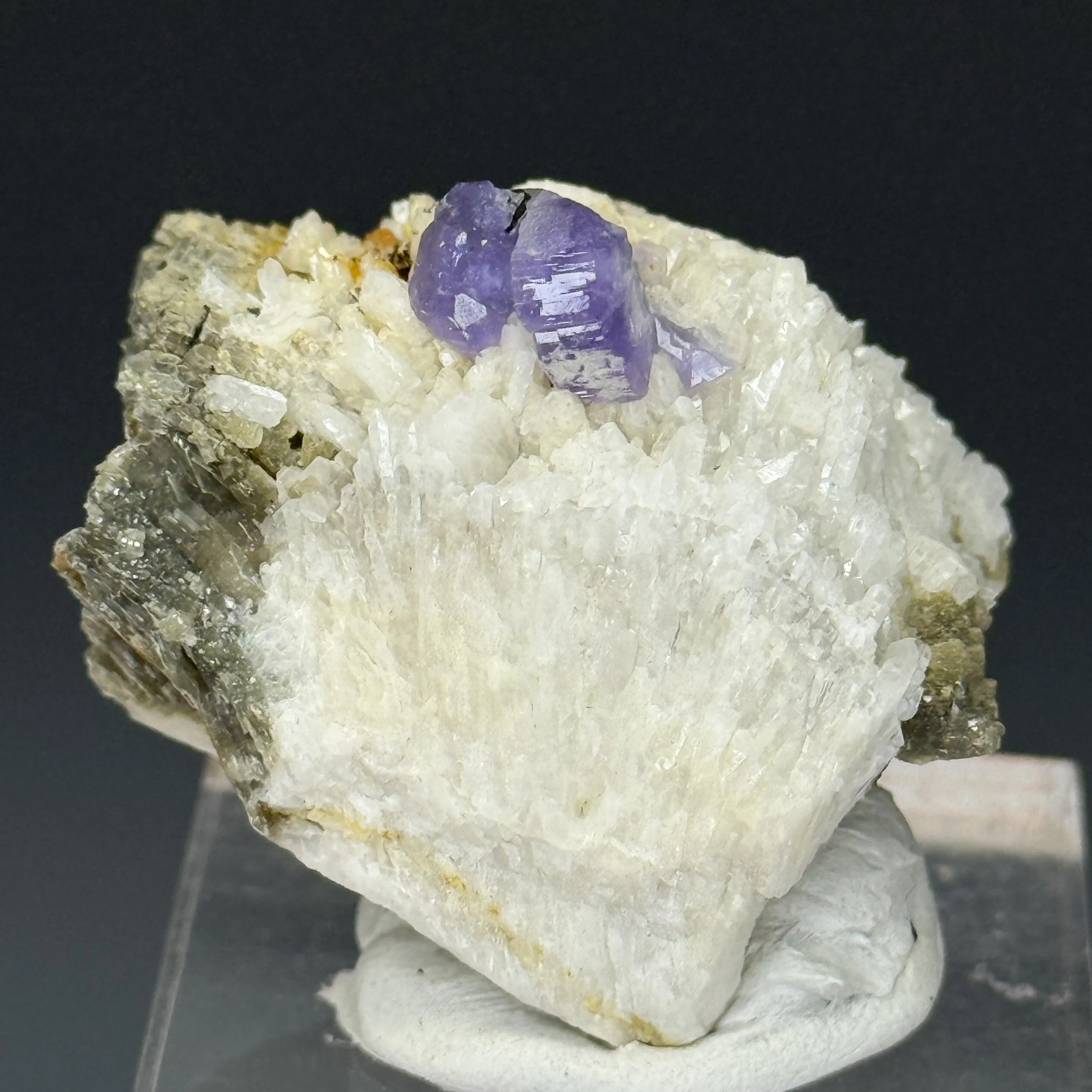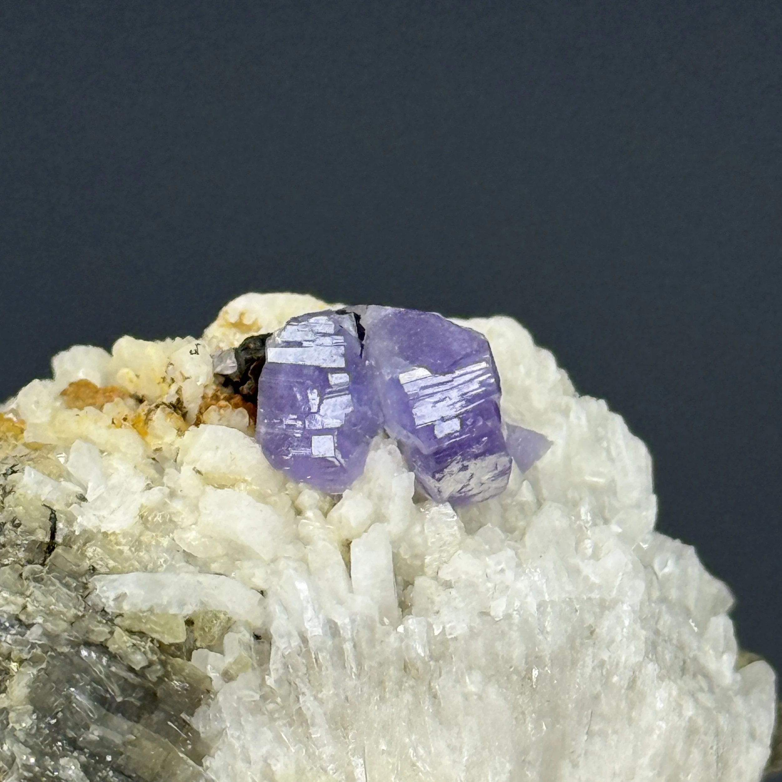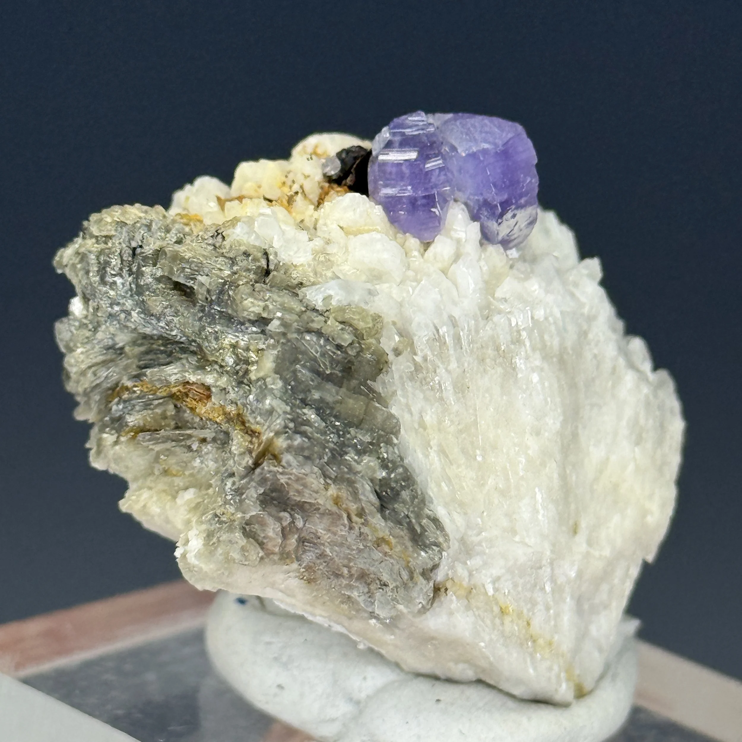 Description: A lustrous wulfenite crystal with copper from Tsumeb. An unusual combo that sits nicely on matrix. Minor dings visible, in great shape otherwise. Ex: Magnasco, Steven Phillips
