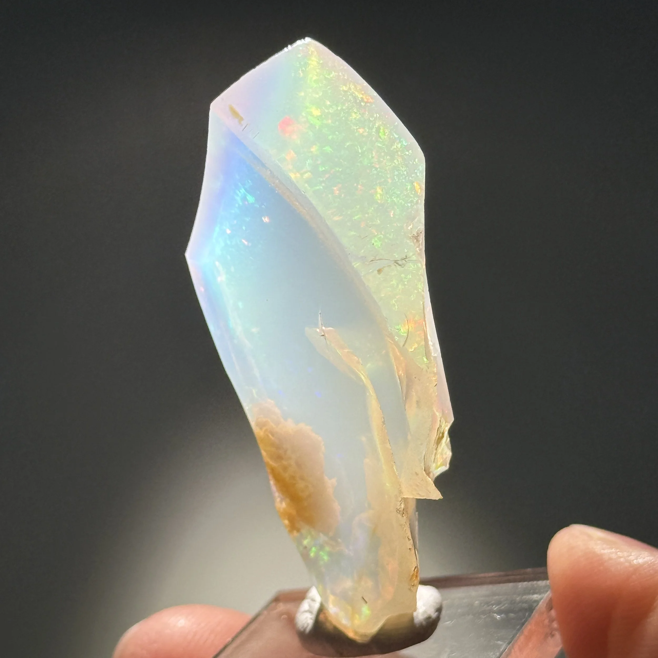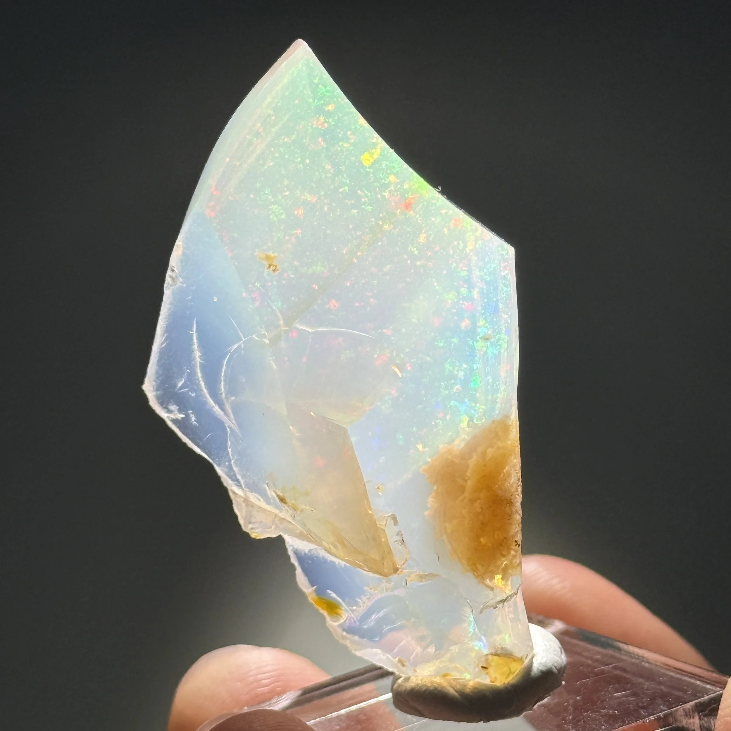 Description: Two transparent parallel gem crystal with a razor sharp terminations. The color is unique, I would describe it as grading from a yellow at the tip to peach at the bottom. This material has become incredibly hard to acquire in recent years and I was only able to obtain a small number of specimens.