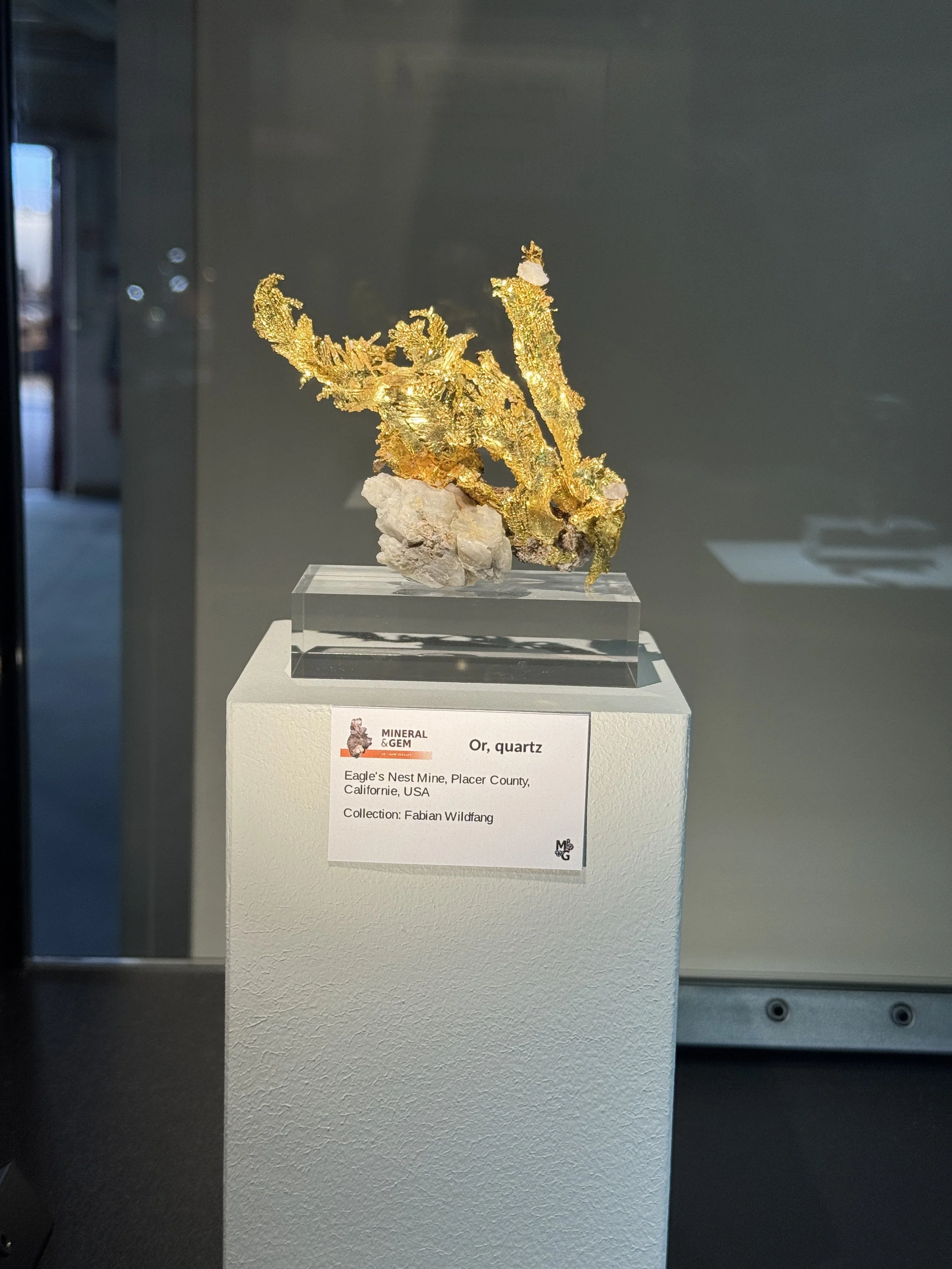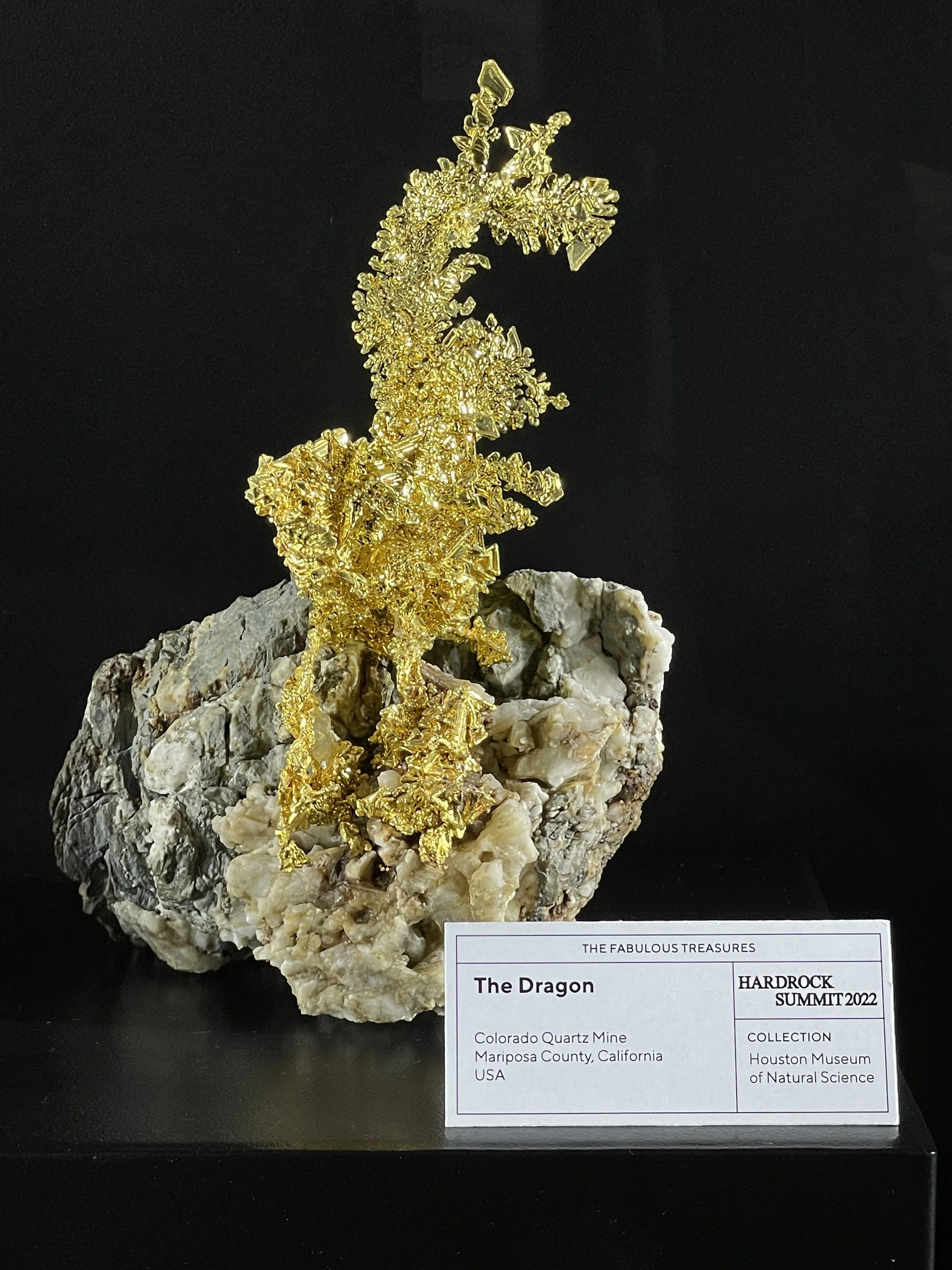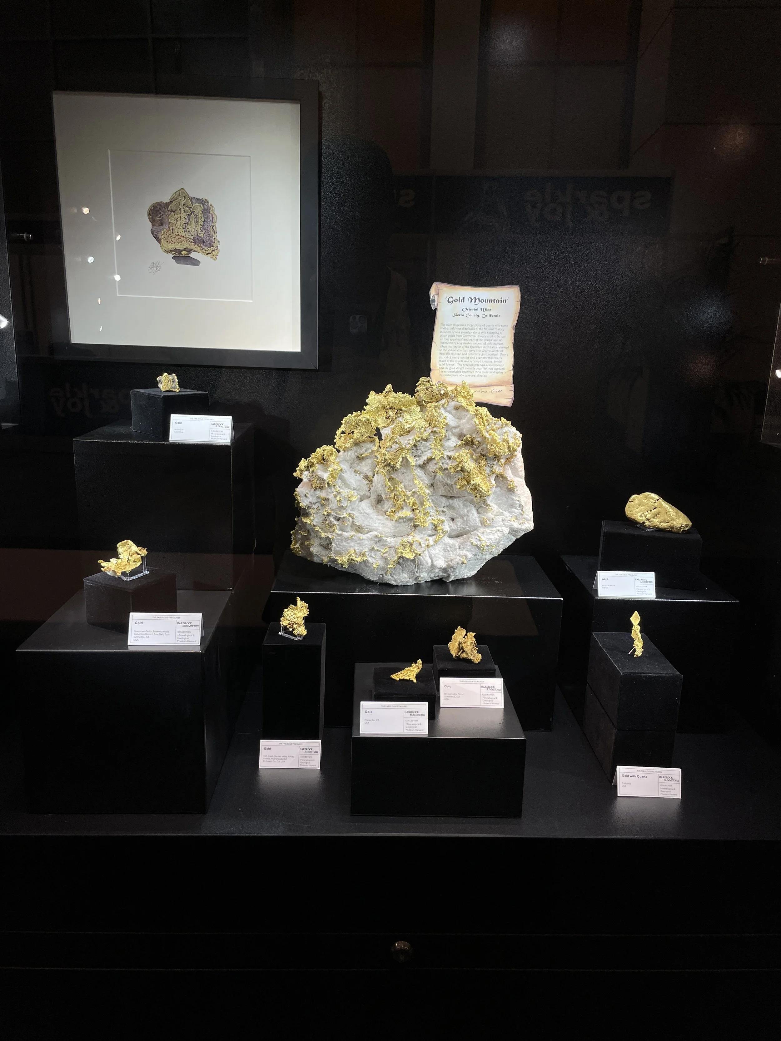 Additionally downstairs at the Hardrock section there were some stunning golds on display including some world class singles such as the Dragon, Ausrox Nugget, the Crystal, the Rams Horn, Dragons lair and others. Along with these the fabulous gold collection assembled by Wayne and Donna Leicht was on display. The gold dispaly was simply astounding, even though I have seen several pieces in person before seeing so many world class specimens in one cohesive display was breathtaking.