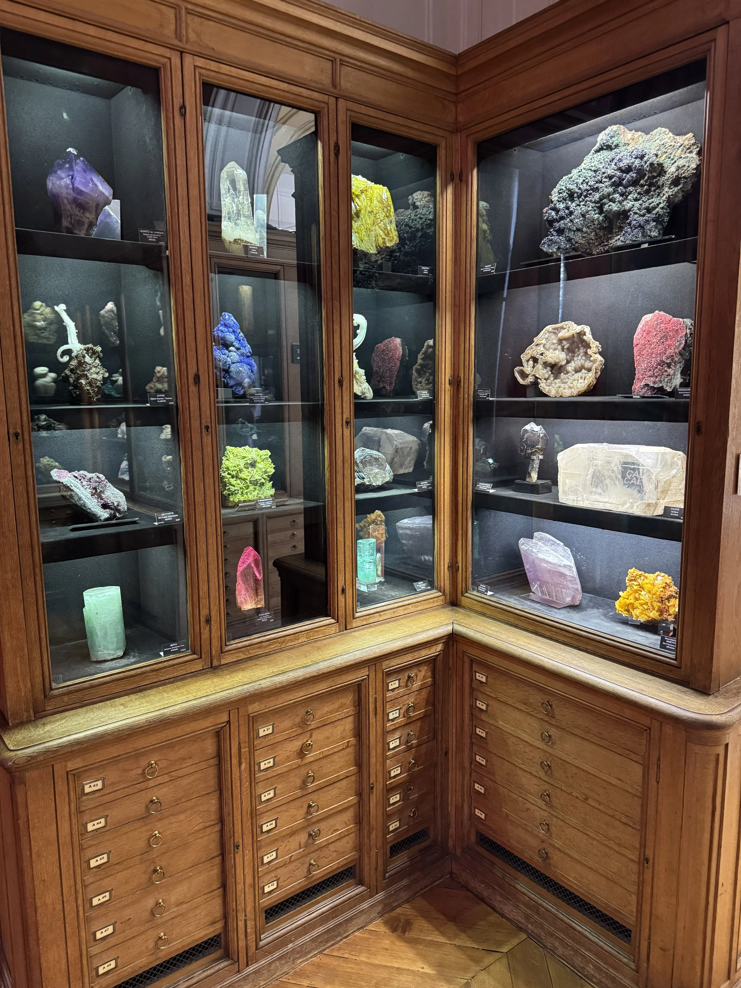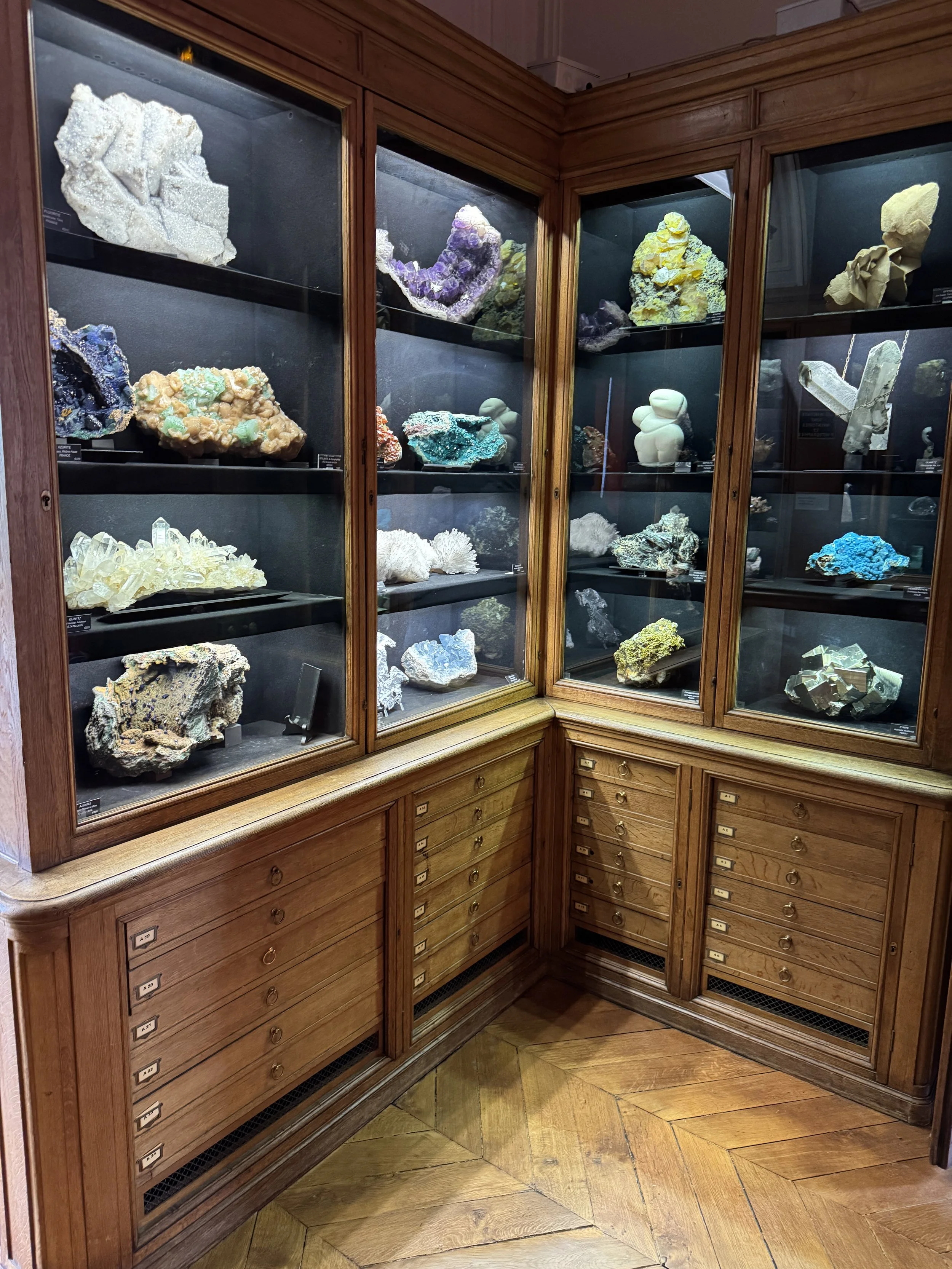 I also just want to take a second to talk about how worthwhile it is to take time to see the mineral museums in Paris:). This year I was privileged to visit the fantastic l’École des Mines de Paris aka Paris School of Mines Museum and the Museo de los Minerales de la Universidad de Sorbonne aka Sorbonne University Museum. Both are located in Paris perhaps 10 minutes from walk from each other. Each museum represents its own facet of French mineral collecting heritage. If you have the time I would recommend spending 3-4 hours at each museum minimum. But in a rush it is quite possible to do both in one Day. Below are some notes on each museum. If you go visit after St. Marie make sure to check their schedule since the operate different hours during the summer and there are many French holidays in July.