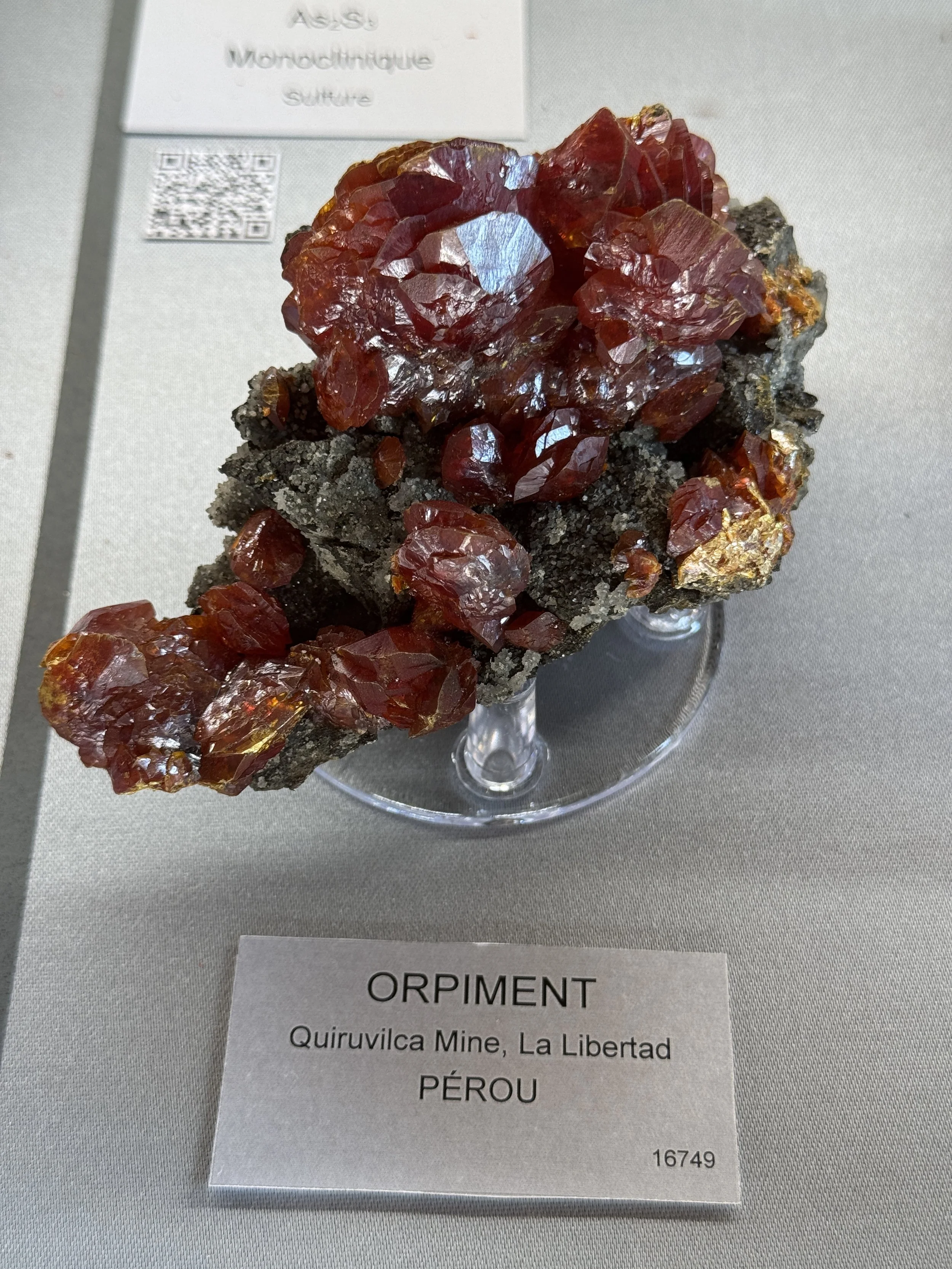 The Paris school of mines museum certainly looks the part of a historic mining school museum, with lovely antiquarian wooden cases displaying a plethora of specimens with many others hidden away in locked drawers underneath. While there I was lucky enough to meet Dr. Eloïse Gaillou who graciously took time to point out some unique specimens and chat about minerals. Below I have posted some photos of some standout specimens. There are far too many good specimens to even come close to giving a slightly comprehensive overview. I merely picked some personal favorites to show here. There is a minor admission fee, they accept credit card payment.